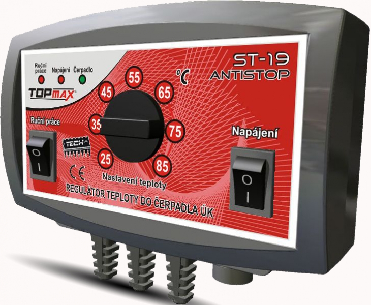 REGULÁTOR ST-19 JE URČENÝ PRE RIADENIE OBEHOVÉHO ČERPADLA ÚSTREDNÉHO KÚRENIA.