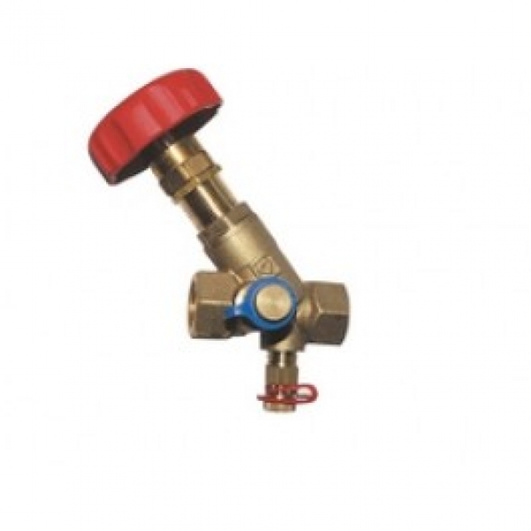 šikmý s vnútorným závitom, s 2-mi meracími ventilčekmi pre meranie tlakovej diferencie namontovanými z výroby, s možnosťou úplného uzatvorenia ventilu, teleso ventila z mosadze odolnej voči vyplavovaniu zinku, vreteno tesnené dvojitým O-krúžkom, zvršok dotesňovaný v telese cez O-krúžok, prednastavenie je prostredníctvom obmedzenia zdvihu, s vrtmi uzatvorenými uzávermi pre možnosť osadenia vypúšťacích ventilčekov (objednávajú sa samostatne):